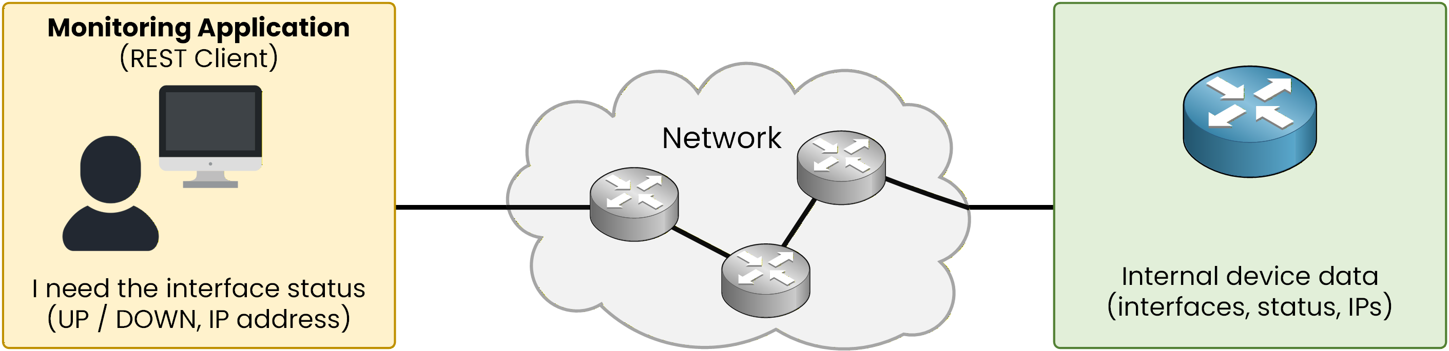 This application needs to regularly check the status of interfaces on multiple routers to make sure the network is operating correctly.