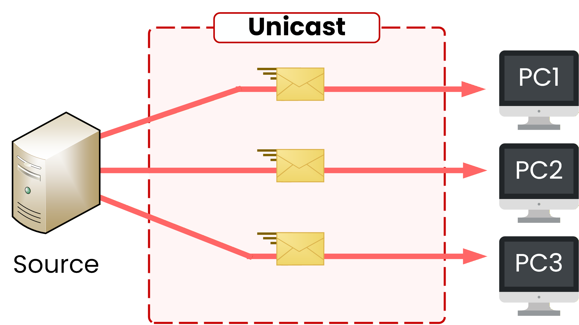 In a typical network, most traffic follows a simple pattern: one source sends a packet to one destination. This is called unicast traffic.