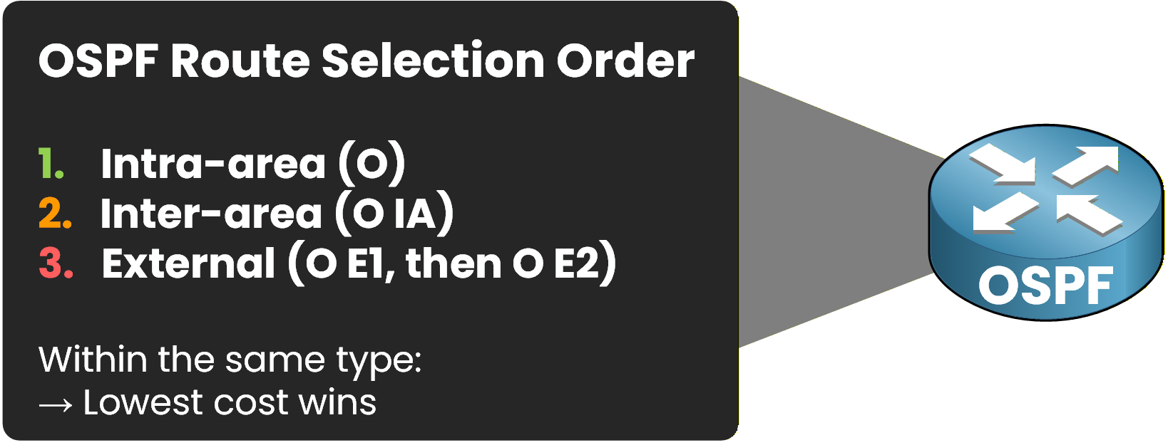 OSPF Route Selection Order (Most Preferred to Least Preferred)